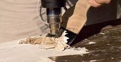 - 3Проводится шпатлевка зазоров. Для этого используется шпаклевочная паста под цвет покрытия. В случае, если пасты подходящего оттенка нет, используют пыль, оставшуюся после предыдущих этапов обработки (ее добавляют к шпаклевочному средству и размешивают до получения однородной массы).